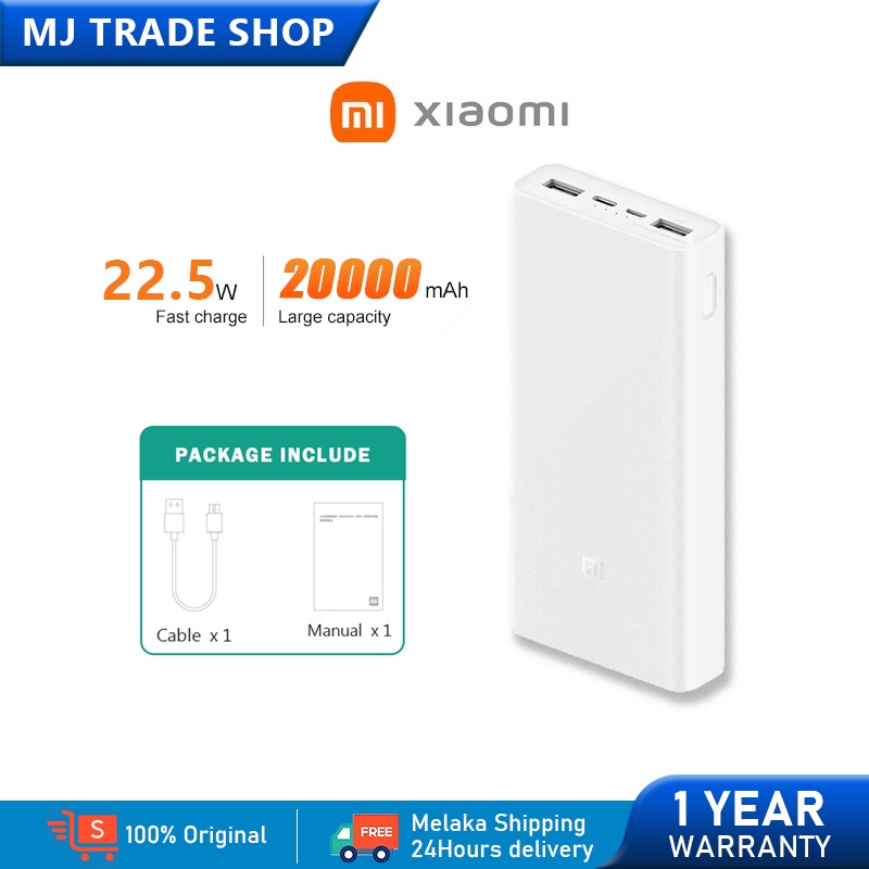 Xiaomi Mi Powerbank 3 20000mah 22 5w Max Super Fast Charging For Laptop Mobile Phone 3 Ports Output Usb Type C 小米充电宝 Shopee Malaysia